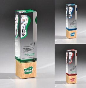 Здесь акрил — король. Представьте себе ежегодную встречу отдела продаж или партнерский банкет. Людей много, награждать нужно десятки человек. Стекло — тяжелое и хрупкое, дерево — массивное и не всегда вписывается в современный дизайн. А вот прозрачные или матовые кубы, призмы и пирамиды из акрила смотрятся дорого и современно. Они не перегружают интерьер офиса, в который потом попадут.