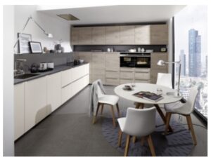 Если кухня узкая и длинная, то подойдет линейная или двухрядная схема. Угловая хороша для квадратных помещений, а П-образная – для тех, кто любит много готовить. Есть ещё и полуостровные варианты с барной стойкой или островом, но, как пишет rinali.ru, они требуют места и заранее продуманной электрики.