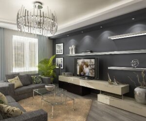 - Архитектурный: подсветка ниш, полок или телевизионной зоны. Это задает глубину пространству.
