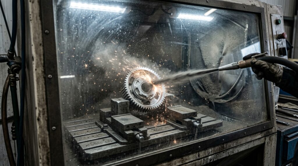 «Эффективность пескоструйной обработки напрямую зависит от правильного подбора абразива и давления: для мягких металлов подходят гранулы диаметром 0,2–0,5 мм, а для твердых — до 1,5 мм.»