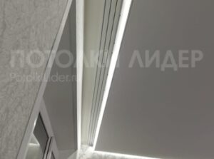 И только после того, как весь каркас собран, проверен по уровню и надежности, приезжают монтажники натяжных потолков. Они заправляют полотно в багет внутри ниши, и оно получается как бы утопленным внутрь.